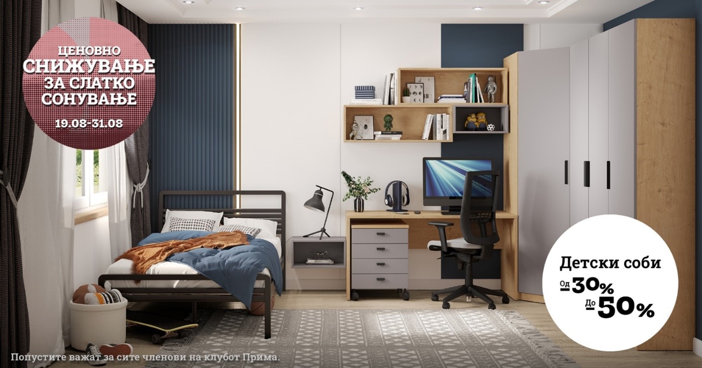 Посетете ги нашите салони за време на акцијата „Ценовно снижување за слатко сонување“ и израдувајте го вашето дете со нова детска соба.