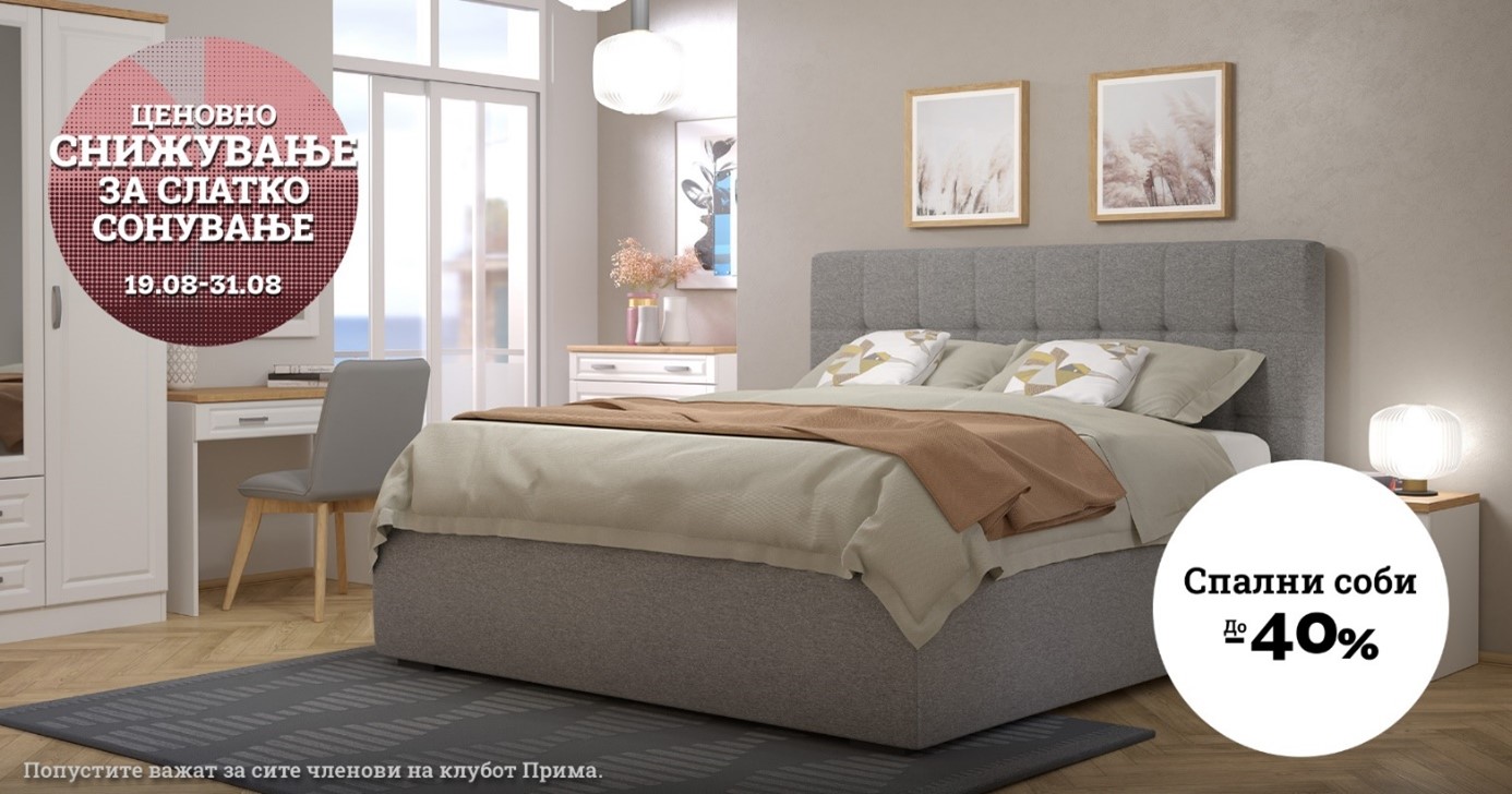 Пристигнуваат деновите на „Ценовно снижување за слатко сонување“, што значи дека ова е совршено време за нова спална соба. Посетете ги нашите салони и одберете некоја од нашите спални соби кои во моментов се по намалена цена од 40 %.