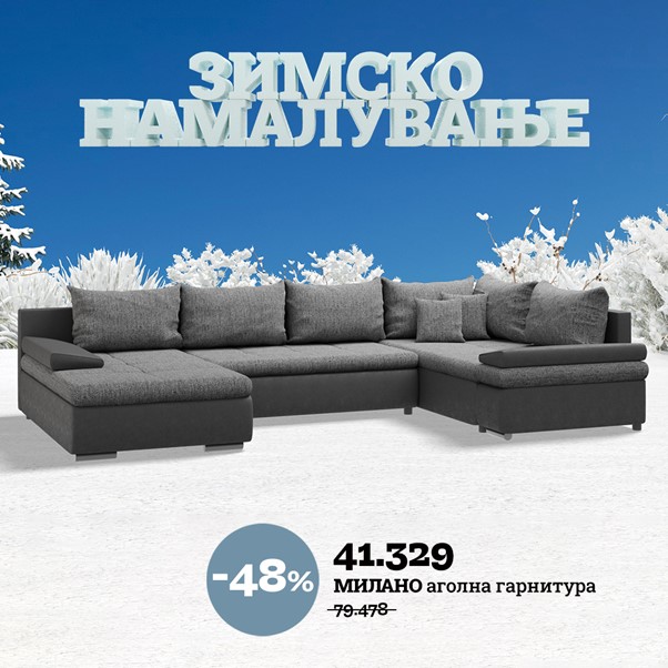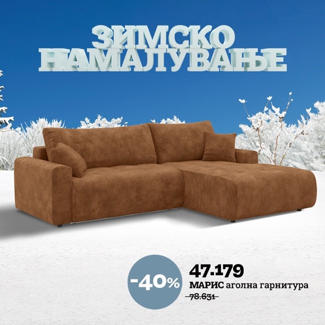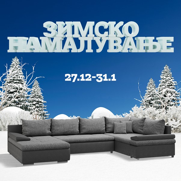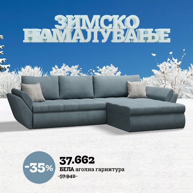 Зимско намалување за вистинско уживање. Аголни гарнитури со одличен квалитет „одоговорни“ за добра дружба и супер удобност. За време на акцијата Зимско намалување ви ги нудиме со намалување до 40 %. Ве очекуваме!