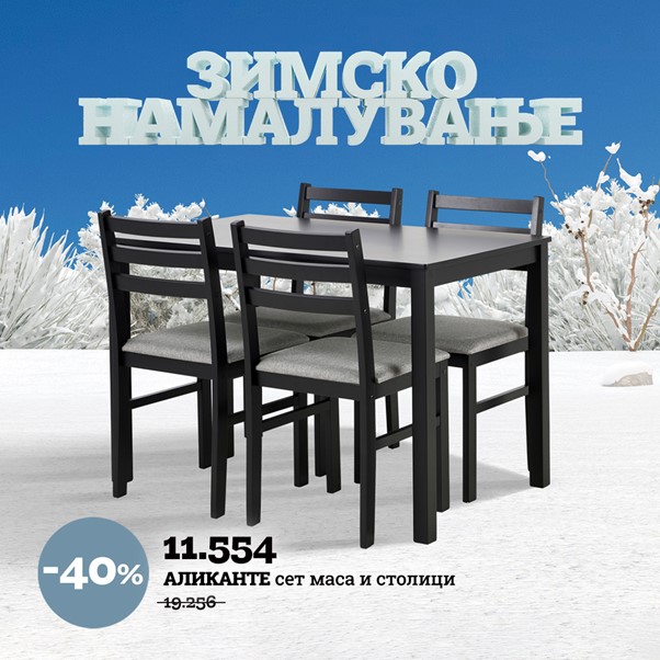 И кога просторот е мал – имаме решение: сет маса и столици Аликанте со одлично намалување од 40 %.