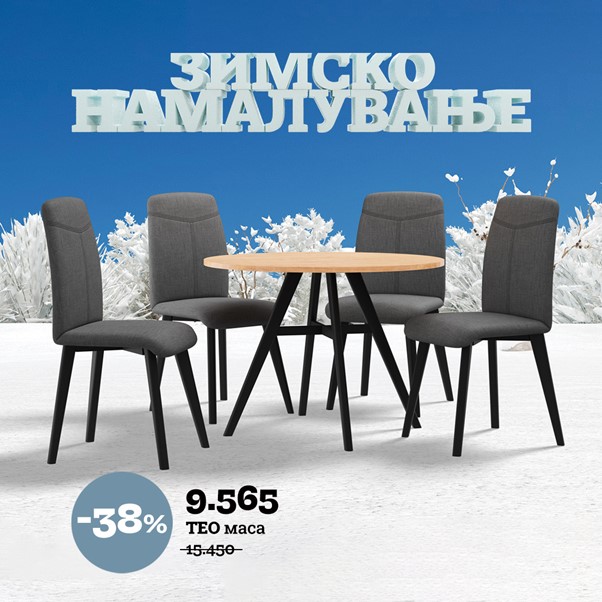 Зимата е идеално време за нова топлина во домот. Од 27.12 до 31.1 ве очекува зимско намалување со попусти до 55% на сите кујни и 50% попуст на монтажа на кујните по мерка.Создадете простор каде секој оброк е уживање.