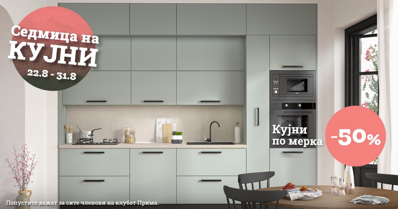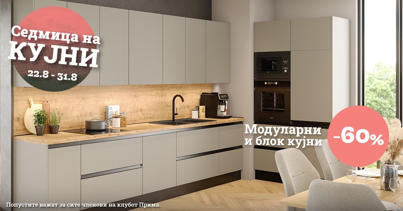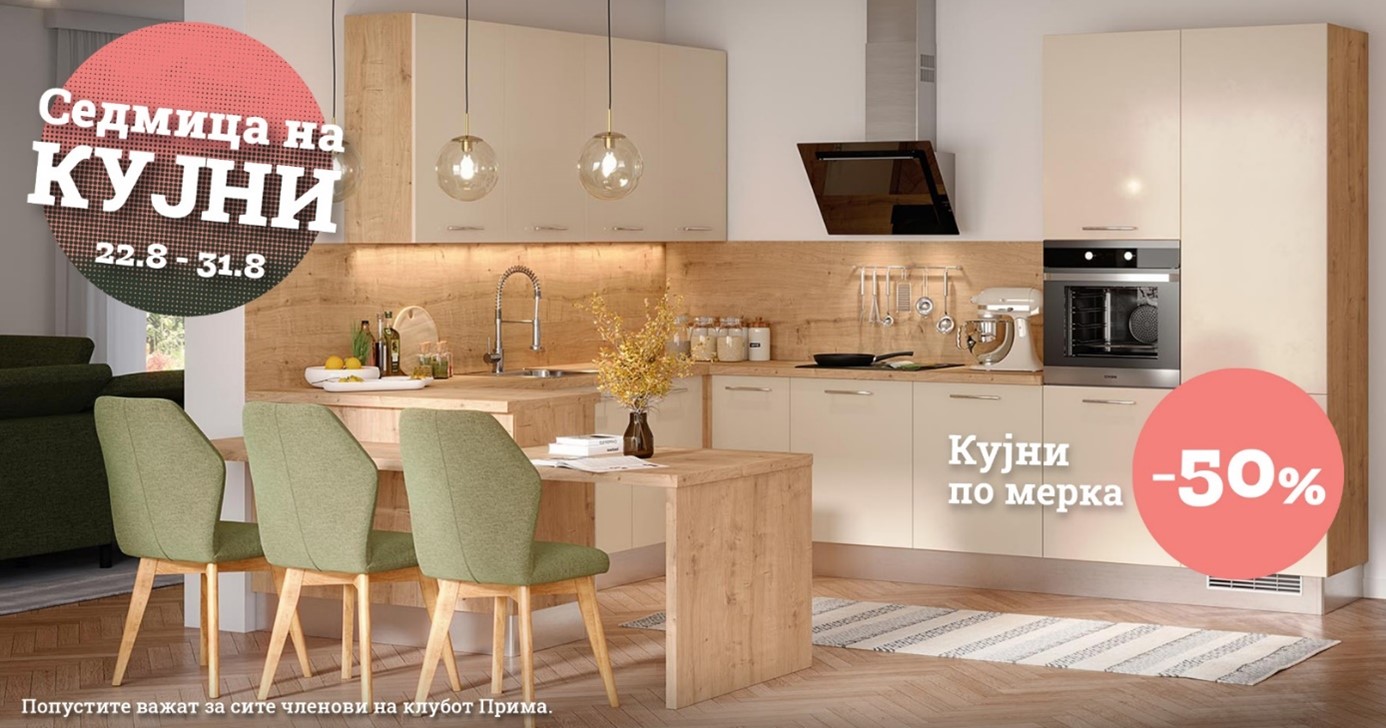 Во салоните на Прима пристигнува Седмица на кујните. Посетете ги нашите салони и одберете ја кујната од вашите соништа. Сега е вистинското време бидејќи кујните по мерка се по намалена цена од 50 %. Ве очекуваме!