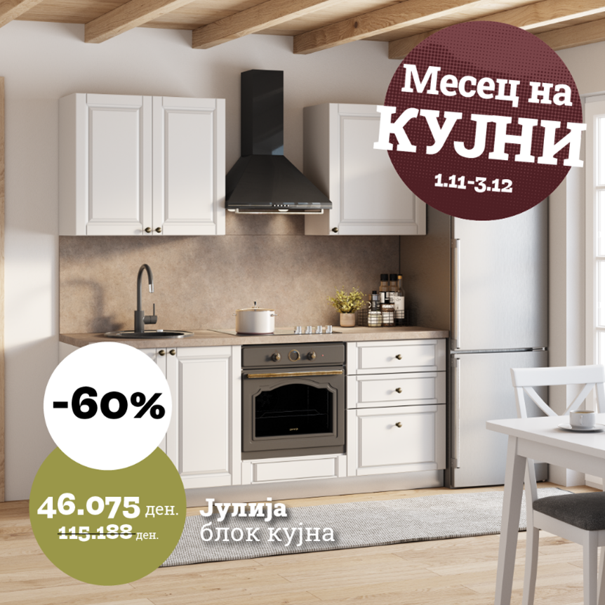 Месец номеври во Прима е резервиран за нашите кујни. Затоа ви подготвивме фантастични попусти. Одберте блок кујна со намалување од 60% или некоја од кујните по мерка кои ни се со попуст до 50%. Ве очекуваме во салоните на Прима.