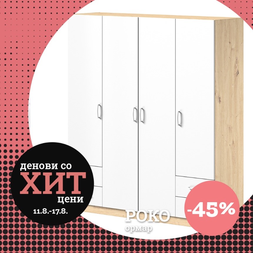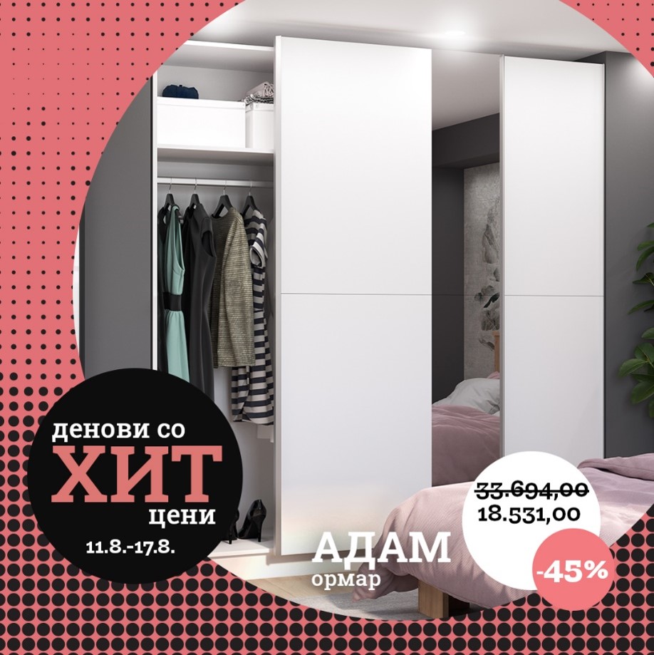 Кој не сака секогаш средена спална соба? И тоа е можно кога за помошници ги имате орманите Адам и Роко кои за време на Деновите со ХИТ цени ве чекаат во Прима со намалување од 45 %.