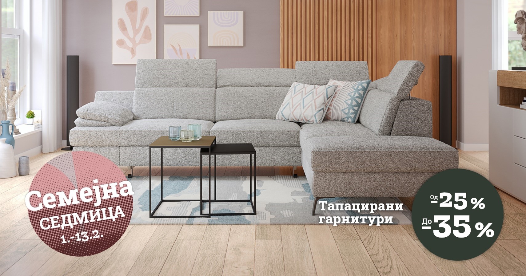 Понекогаш треба соништата и на нашата дневна соба да ги претвориме во реалност. Направете го тоа лесно со нашите тапацирани гарнитури кои за време на Семејната седмица се со намалување од 25 % до 35 %.