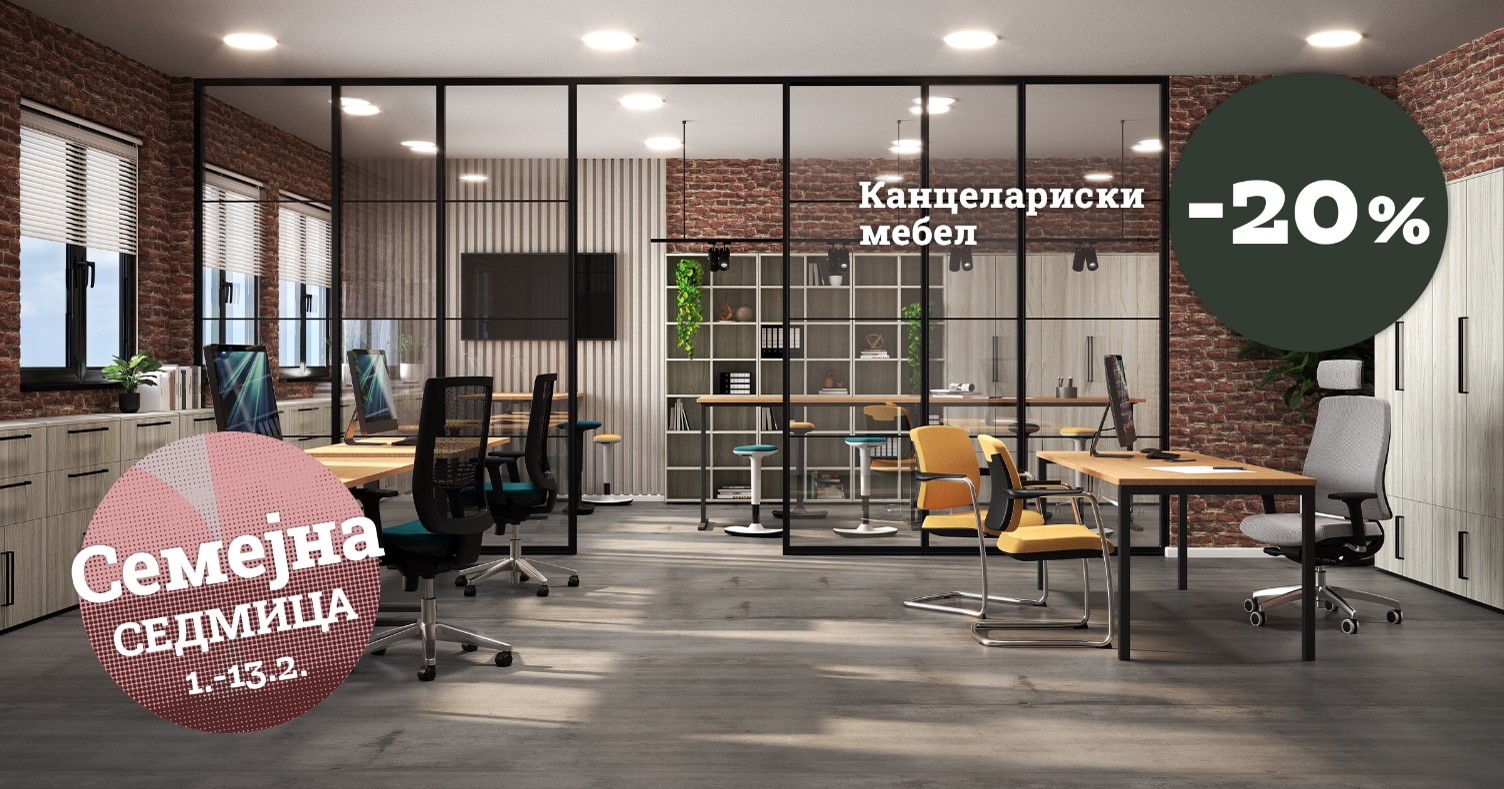 Канцеларијата е место во кое поминуваме голем дел од денот. Тогаш зошто тоа да не биде место што инспирира? Во салоните на Прима за време на Семејната седмица ве очекуваат попусти од 20 % на канцеларискиот мебел.
