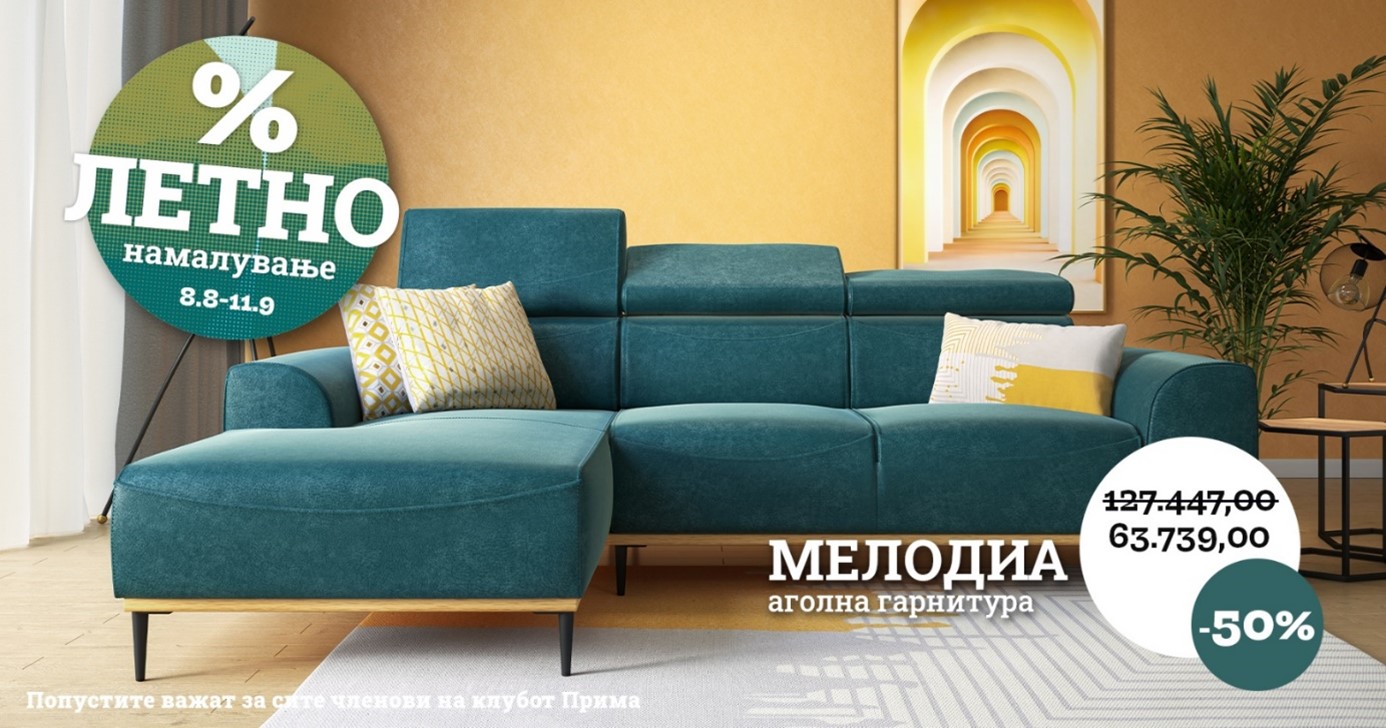 Аголната гарнитура Мелодиа е вистинското летно освежување за секој дом. Во салоните на Прима можете да ја најдете по намалена летна цена од 50 %.