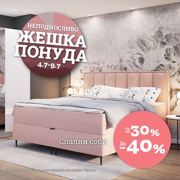 Неодолива летна понуда со жешки цени! Од 4 до 9 јули посетете ги салоните на Прима и откријте ги големите попусти на спални и детски соби, душеци и латофлекси и канцелариски мебел. Прима.