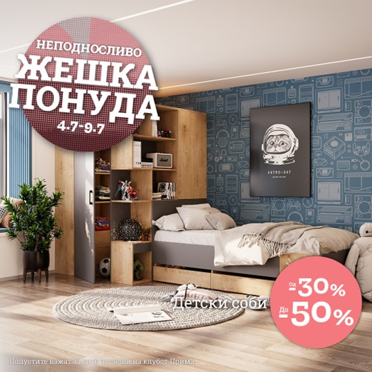 Детска соба во која има место за се. За време на неодоливата жешка понуда ви нудиме детски соби со попуст од 30 до 50 %. Ве очекуваме!