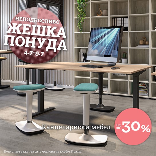 Работите во канцеларија? Тогаш знаете дека во тој простор поминувате една третина од денот. Тогаш зошто тоа да не биде убаво уредена средина? Прима направи понуда во која својот квалитетен канцелариски мебел ви го нуди со попуст од 30 %.