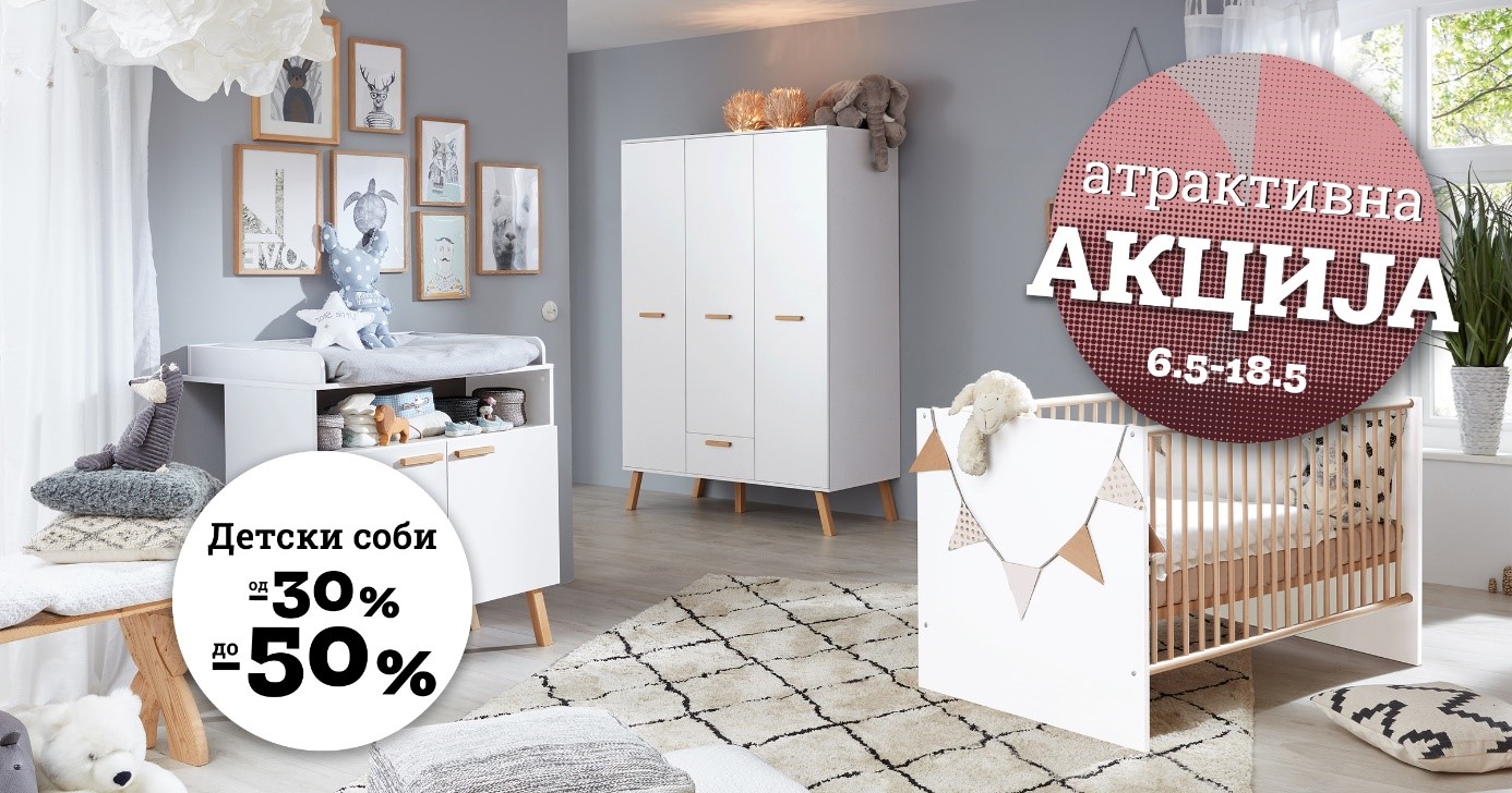 Направете место за игра, радост и одмор за дечињата. Пронајдете го најдобриот мебел и искористете го попустот од 30 до 50 % на нашите детски соби.