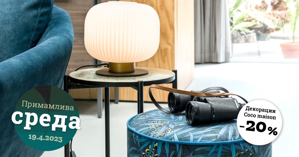 Посетете ги нашите салони и искористете го попустот од 40 % на тапацираните гарнитури, комоди и регали и намалувањето од 20 % на декорациите за дом COCO maison.