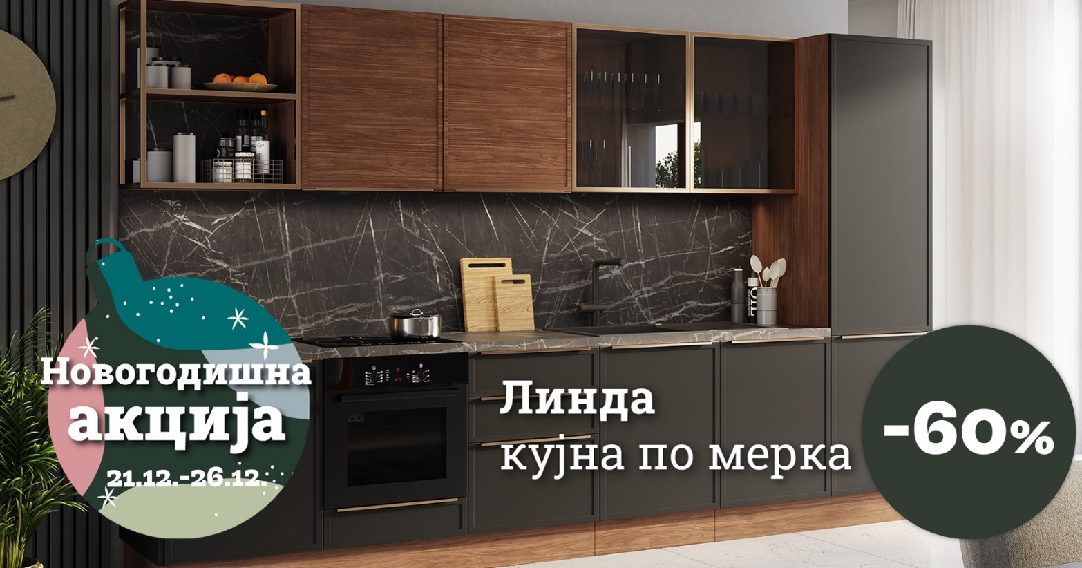 Како знаете дека навистина ќе се радувате овие празници? Така што ќе ја изберете нашата кујна померка Линда која за време на акцијата Прима чести ви ја нудиме со попуст од 60 %.