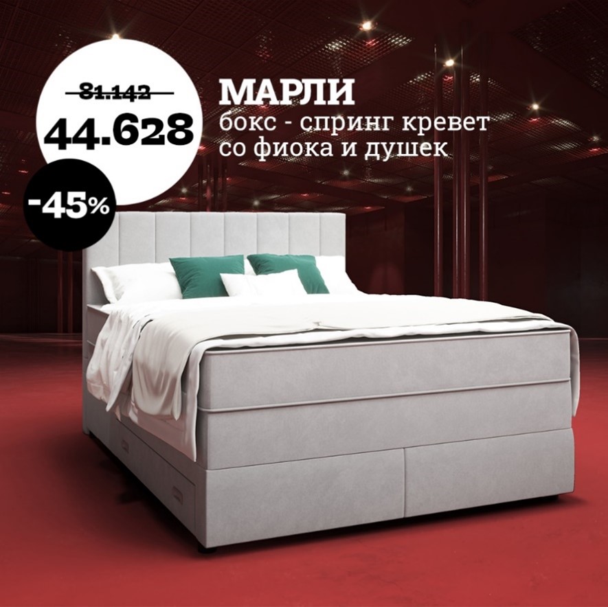 Велат, каков ти е сонот – таков ќе ти биде и денот. Овозможете си квалитетен сон со бокс-креветот Марли и францускиот кревет Тина 2 кој до 24.2 се по фабрички цени. Исто како и нашата акција.