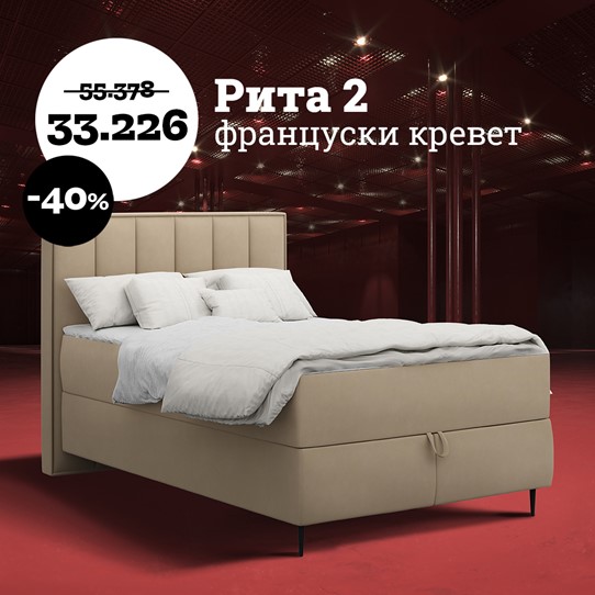 Твоето омилено место во домот штотуку стана попримамливо. Францускиот кревет Рита 2 нуди врвна удобност и модерен дизајн кој се вклопува во секој стил. Сега е вистинско време за квалитетен одмор, бидејќи те очекува попуст од -40%!