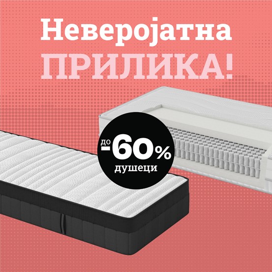 Добриот сон започнува со вистински избор. Од 22.1 до 27.1, избери душек со попуст до - 60% и уживај во комфорот што се чувствува од првата ноќ.