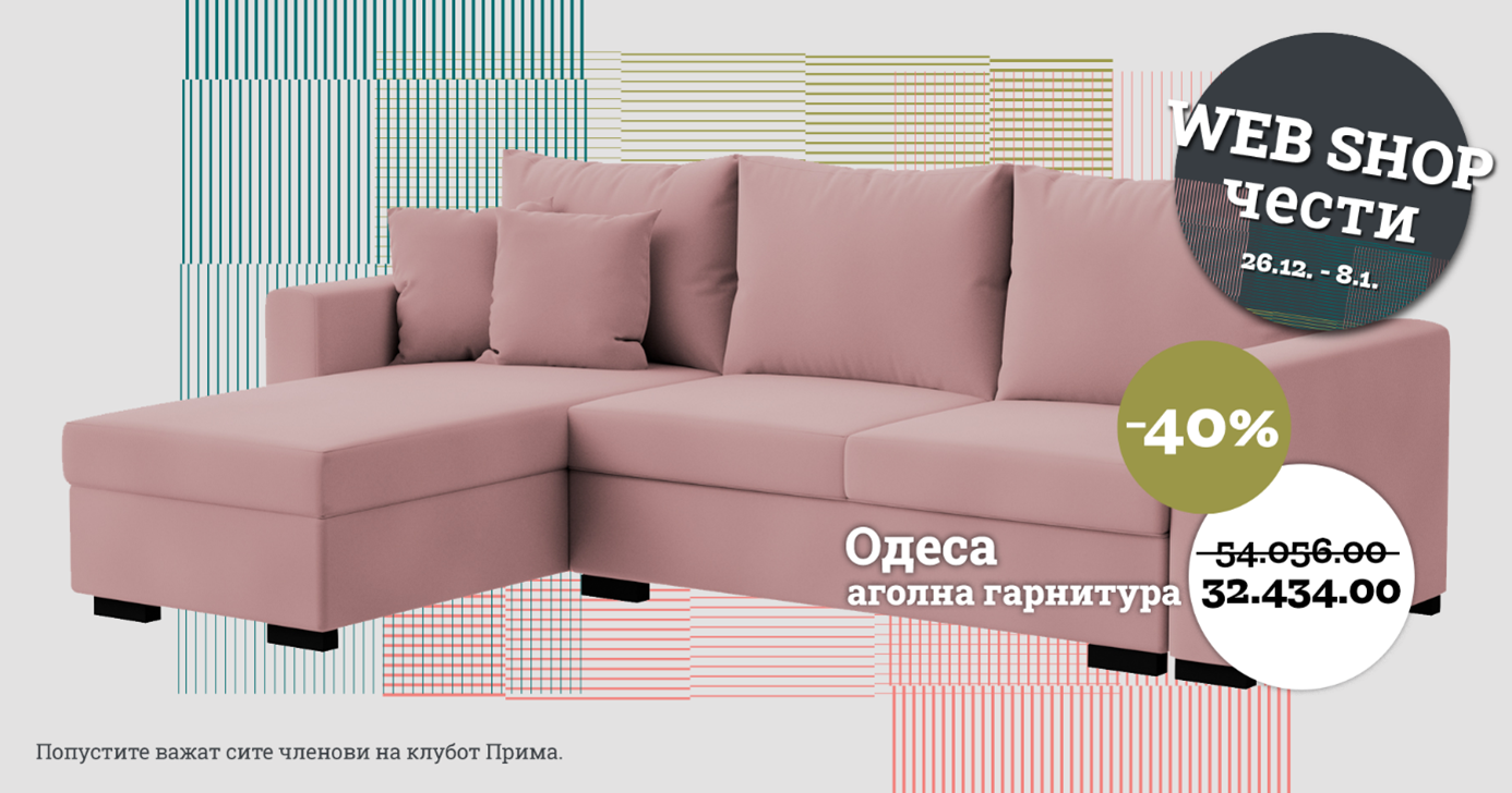 Започнете ја годината во уште поубав дом. Искористете ја акцијата на нашиот web-shop од 30 до 40 проценти на тапацираните гарнитури, како и исклучително поволните цени на издвоени артикли. Прима.