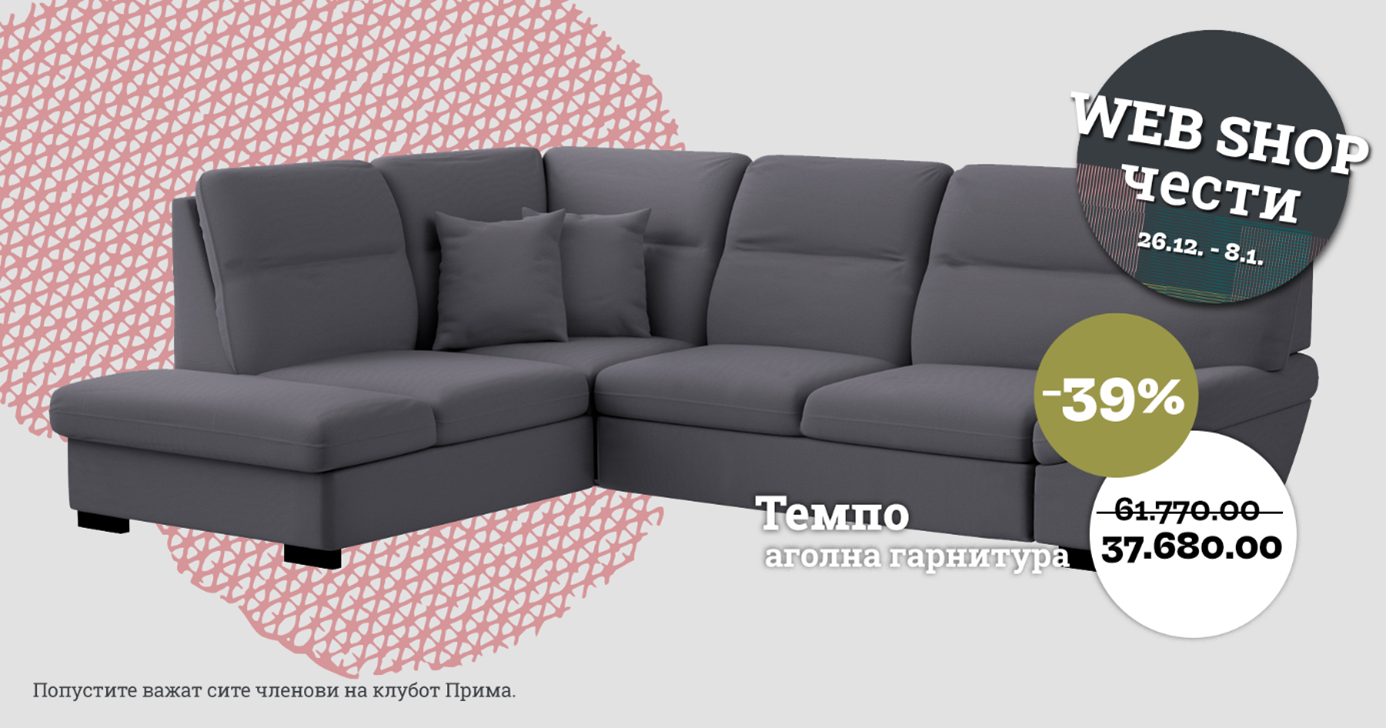 Подгответе се за најубавиот период во годината преплавен со одлични попусти! Во периодот од 28.12 до 8.1.2025 година на web-shop ќе ја најдете аголната гарнитура Темпо по одлична цена од 37.680 денари.