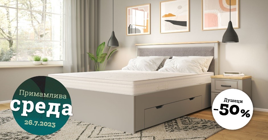 Ова е период во кој Прима ви нуди да ги опремите вашите спални и детски соби со мебел на попуст од 40 % и душеци со намалување од 50 %. Ве очекуваме во салоните на Прима.