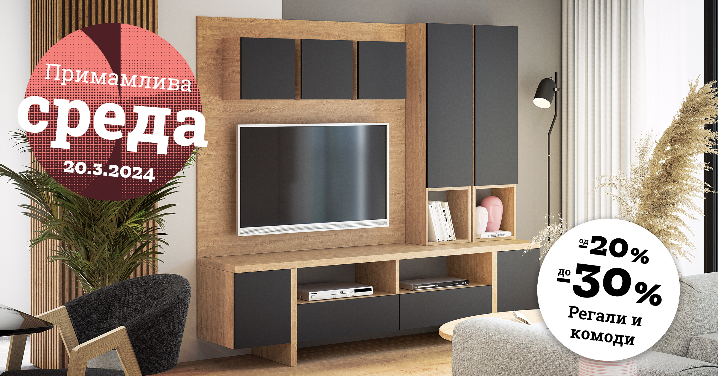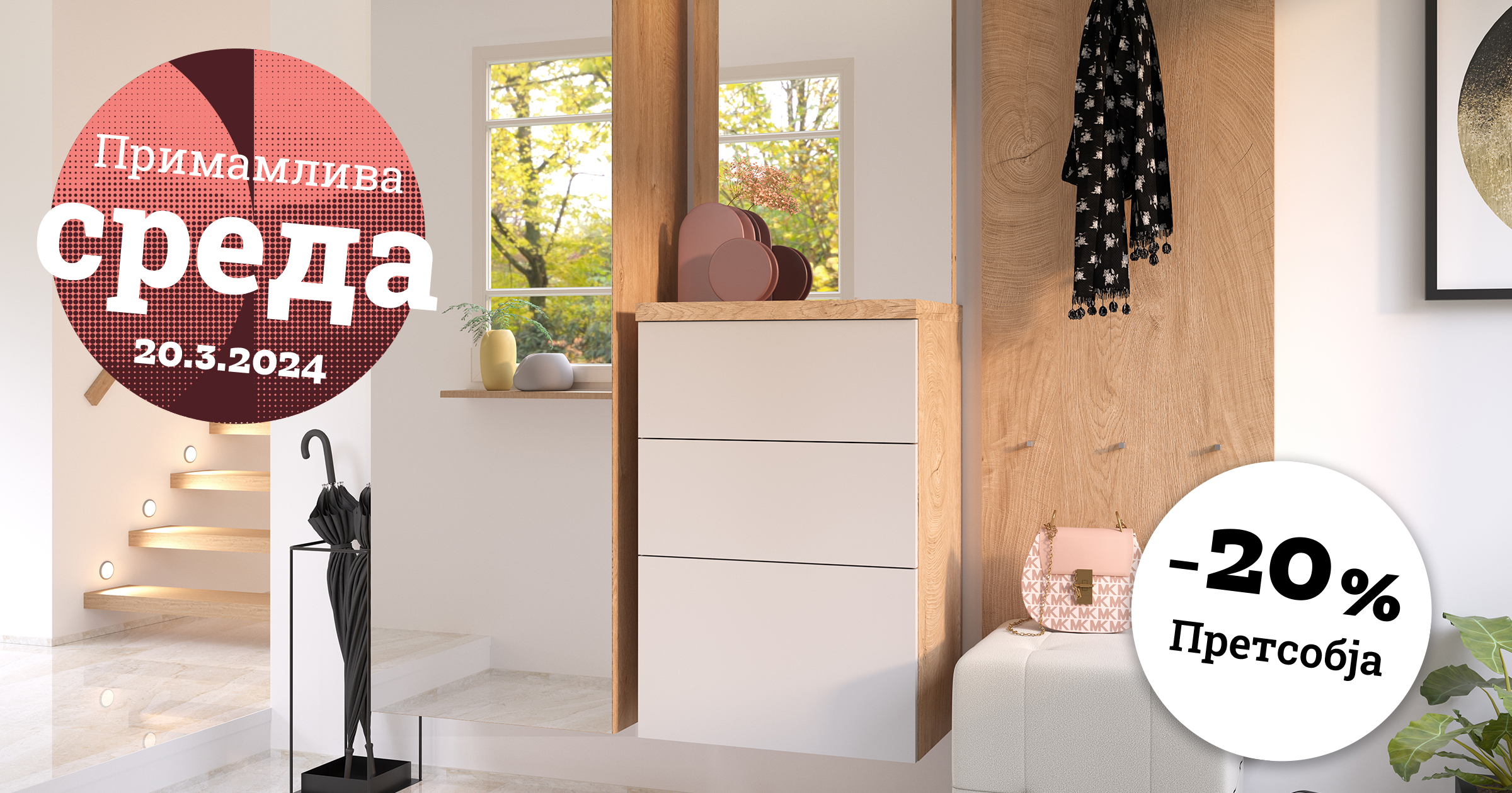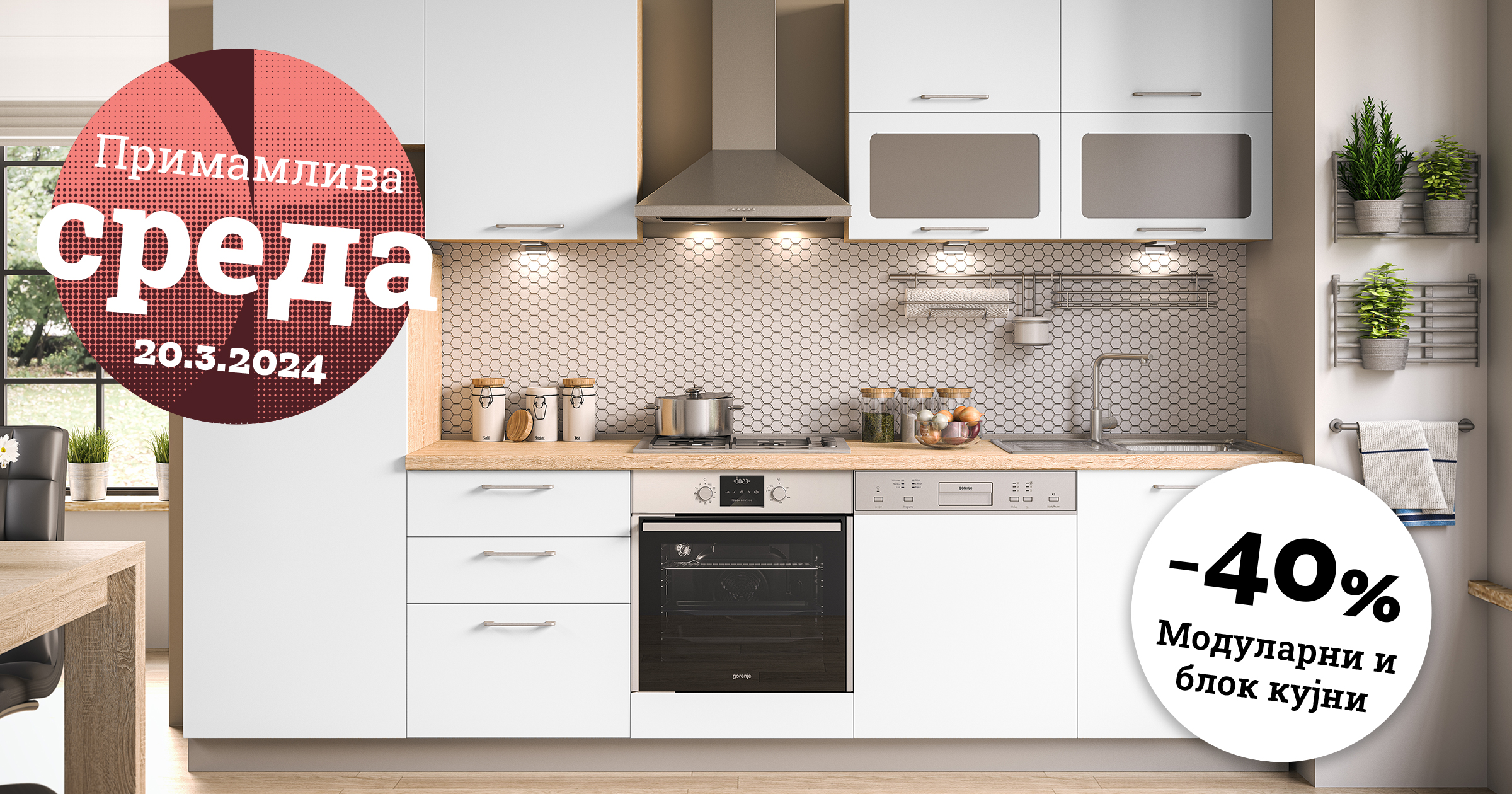 Нашите салони за пролетната ПРИМАмлива среда ви нудат одлични попусти од 40 % на модуларните и блок-кујни, од 20 до 30 % на регали и комоди и 20 % на претсобјата.