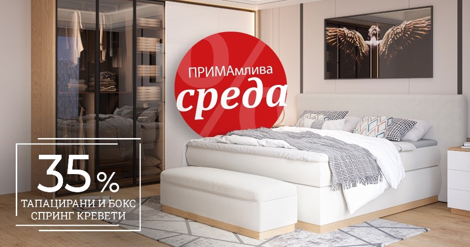 Не ја пропуштајте новата ПРИМАмлива среда која ви нуди 35 % на тапацираните и бокс кревети и дури 50% на душеците.