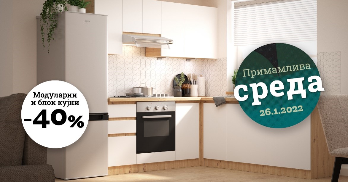 Оваа среда искористете го попустот од 40% на модуларните и блок кујни и 35% на трпезариските маси и столици во сите салони на Прима.
