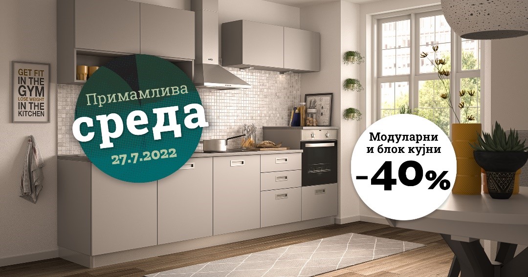 Оваа среда искористете го попустот од 40% на модуларните и блок кујни и 40% на трпезариските маси и столици во сите салони на Прима.