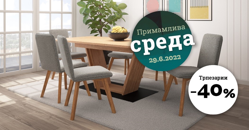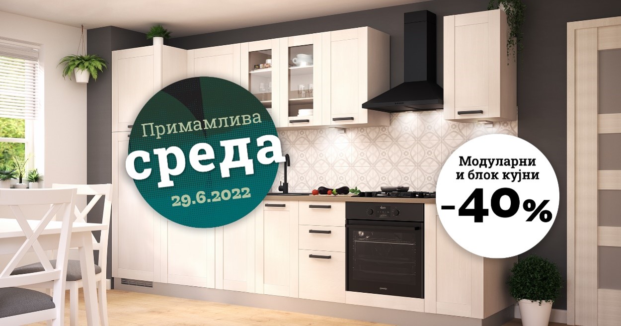 Оваа среда искористете го попустот од 40% на модуларните и блок кујни и 40% на трпезариските маси и столици во сите салони на Прима.