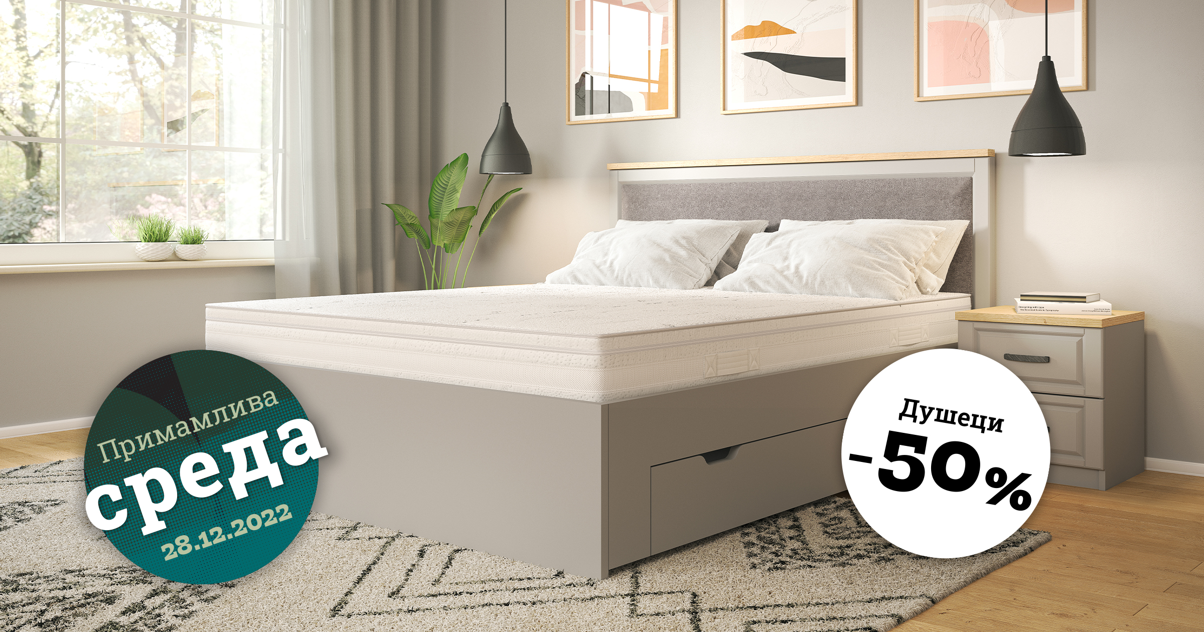 Знаеме дека за добро здравје најважен е квалитетниот сон. Затоа, за време на ПРИМАмливата среда дојдете во нашите салони и искористете го попустот од 40 % на спалните соби и 50 % на нашите душеци.