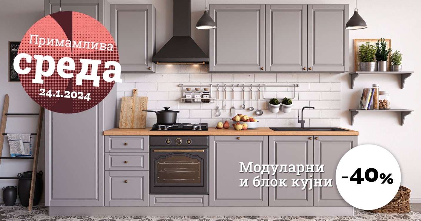 Совршено време за да го освежите вашиот дом. Примамлива среда во сите салони на Прима со примамливи попусти од 40% на модуларните и блок кујни и од 20 до 40 % на регалите и комодите! Се гледаме во среда!