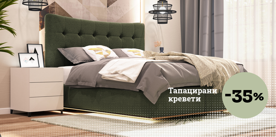 - 35% на тапацирани кревети
