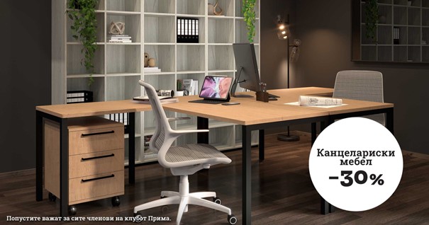 Направи од канцеларијата место во кое секое утро со радост ја започнуваш својата работа. Искористи го попустот од 30 % на канцелариски мебел кој трае од 2 до 9. 10 во сите салони на Прима.
