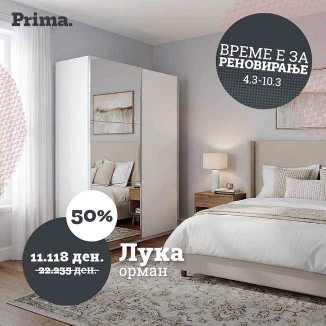 Почитувани клиенти, во четврток, 1 мај 2025 година, салоните на Прима ќе бидат затворени, додека салонот на Прима во Битола во трговскиот центар Блис ќе биде отворен од 10 до 20 часот.