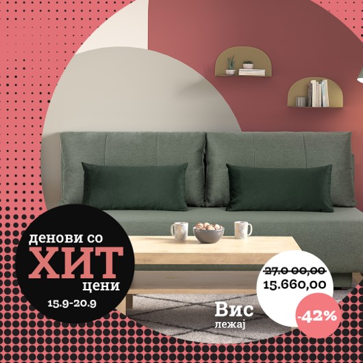 Се до 20.9. посетете го најблискиот салон на ПРИМА и за време на деновите со ХИТ цени купете го лежајот Вис по фантастична дена од 15.660 денари.