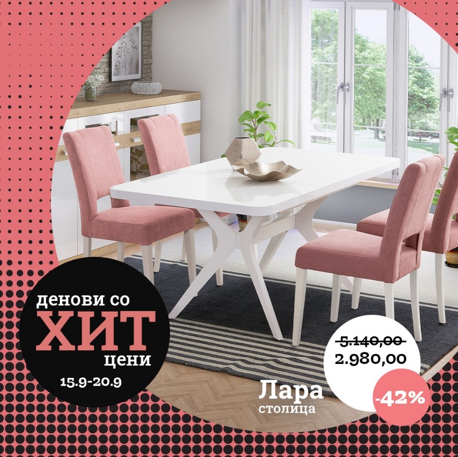 Посетете не се до 20.9. и искористете го попустот на столиците Лара кои за време на акоцијата Денови со ХИТ цени се со цена од 2980 денари.