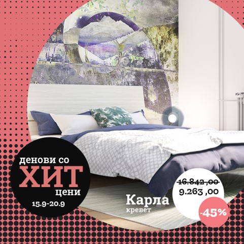 Попустите од нашата акција Денови со ХИТ цени траат уште утре. Посетете не и искористете го намалувањето од 45 % на креветот Карла.