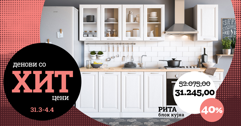 Посетете го најблискиот салон на Прима и искористете ја фантастичната Хит цена на блок кујната Рита која до 4.4. е со намалување од 40%!