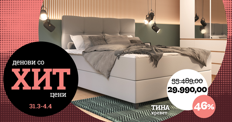 Искористете ги Деновите со ХИТ цени во Прима и опремете ја вашата спална соба со нов кревет. Се до 4.4. креветот Тина е со намалување од 40%.