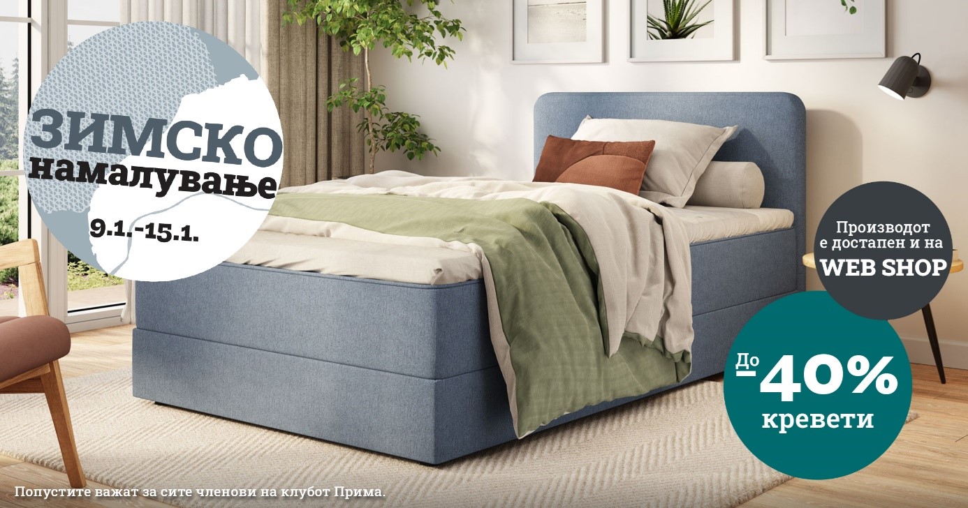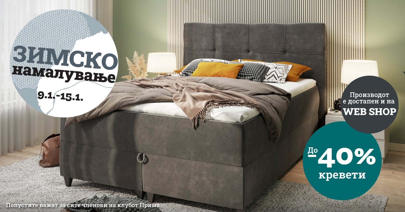 Време е за одличен сон. Посетете ги нашите салони или нашиот web-shop и искористете ги попустите до 40 % на креветите и 50 % на орманите за време на акцијата која трае до 15.1.
