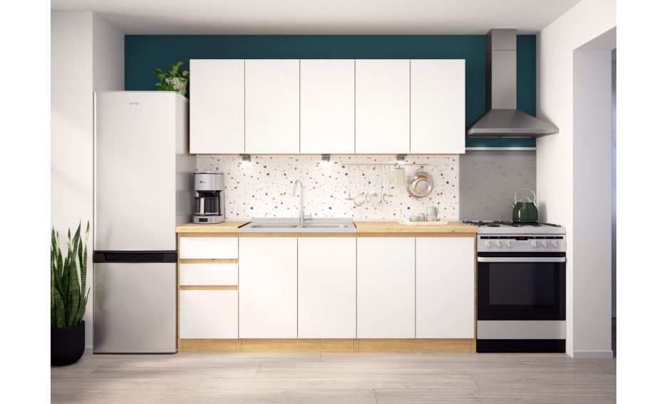 Блок кујна, Уна даб онтарио /бело, 200 цм S5