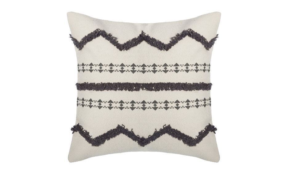 Навлаката за перница Tuff е совршена за украсување софа, фотеља или кревет. Мека и пријатна на допир, изработена од памук. Трансформирајте ја вашата дневна соба или друг агол од вашата куќа во пријатен боемски стил за миг со ова целосно бело перниче со сиви детали.